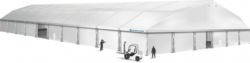 Leichte Aluminiumkonstruktion der Aluminiumprofile ermöglicht eine schnelle Umsetzung, sowohl der Herstellung selbst, als auch der Montage des Objekts. Multifunktional – individuelles Design und Projektabhängig von der Anwendung. Möglich für den Einsatz bei Veranstaltungen, Messen, Lagerhallen, Sportobjekten und sogar Industrieobjekten.